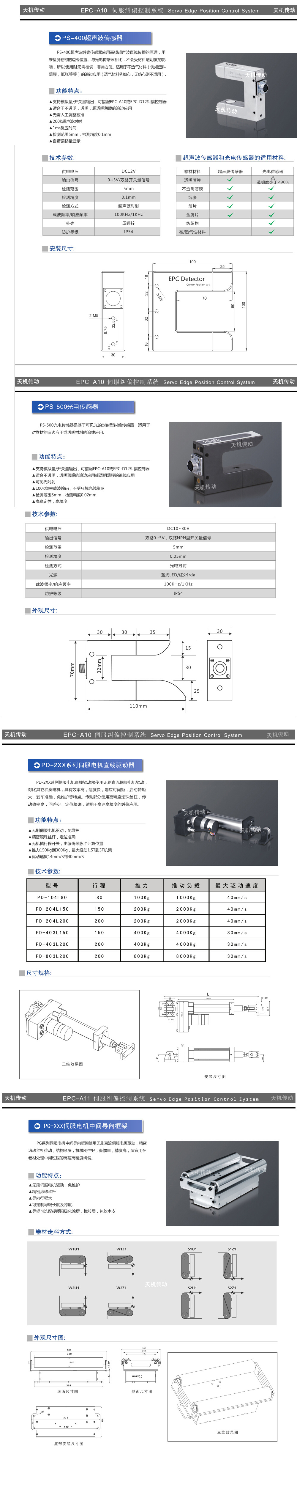 EPC伺服纠偏系统采用高速32位CPU驱动直流伺服电机,采用无超调积分可变PI调节算法,纠偏精度高,反应速度快,支持跟边,跟线以及对中等三种工作方式。
