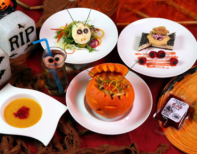 怪物食品:芝士南瓜球把奶酪、鸡蛋、西红柿或煮熟的胡萝卜和几瓣蒜磨混合后滚成小球用橄榄和香草作装饰做出小的南瓜脸